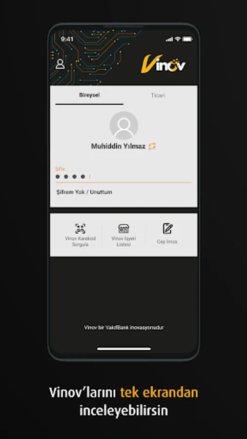 With the Vinov application, our individual and commercial customers can create Vinovs, receive early payments or transfer them whenever they want, without going to the branch.