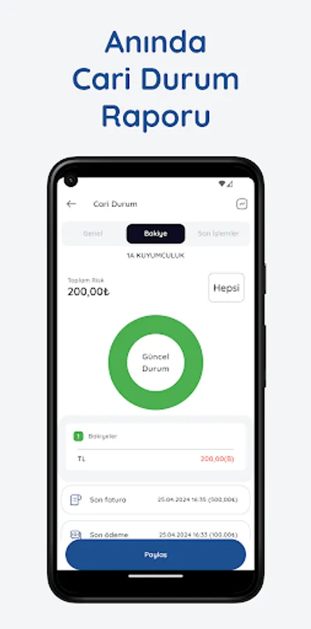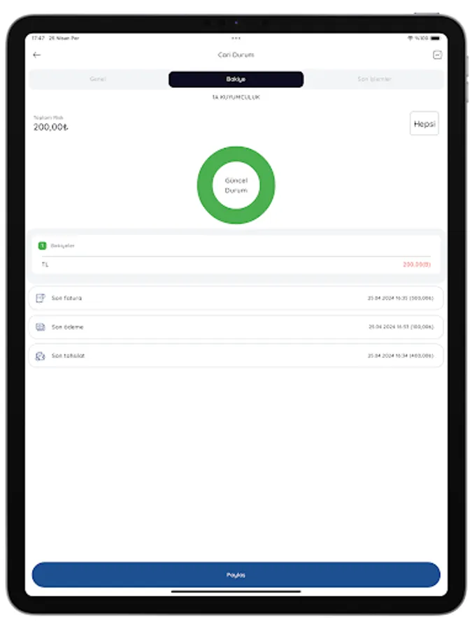 Instantly view incoming/outgoing invoices and match them with stocks. See inventory, VAT, cash status, current accounts, balance and risk reports, and collect your orders with the order pool. Manage all preliminary accounting on a single application with advanced reports.