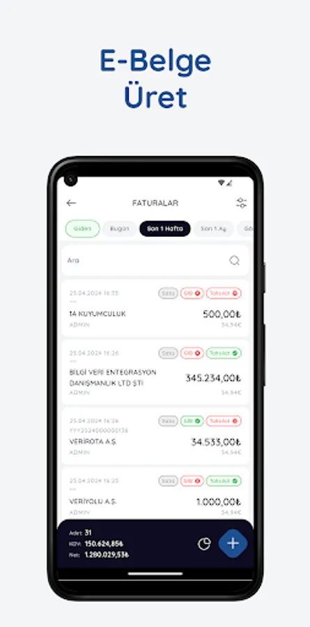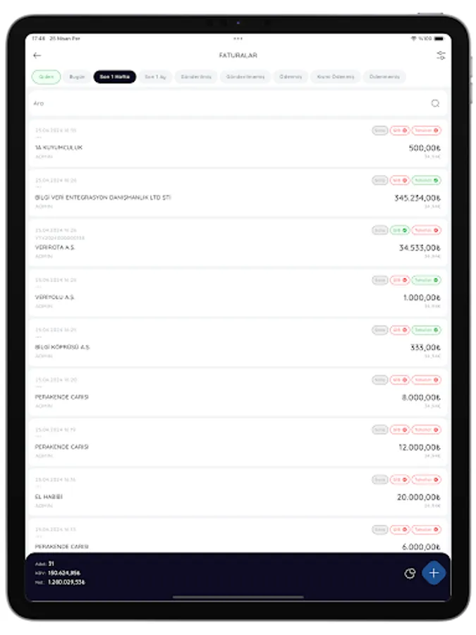 Issue your invoices easily and access the invoice you want in a practical way. Information such as tracking paid/unpaid invoices and sending control to the Revenue Administration is in your pocket with the mobile application.