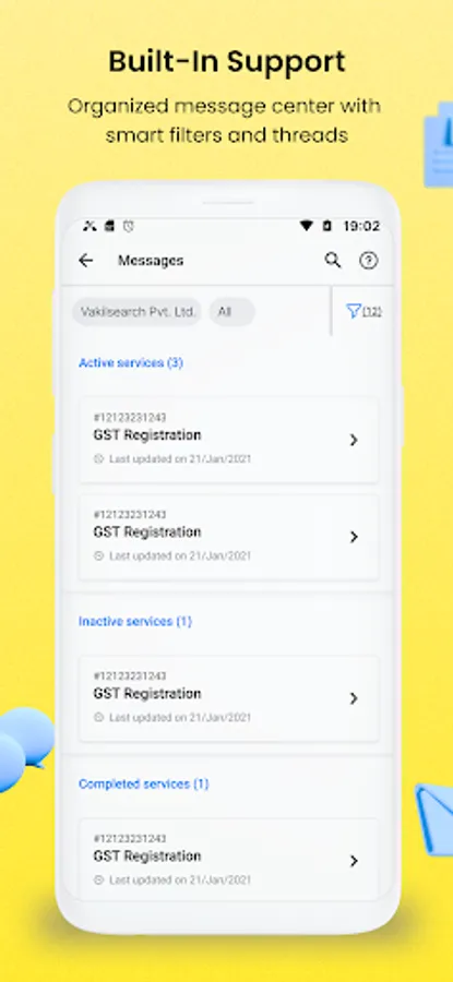 The VakilSearch app is a Legal, Compliance & Tax services App, and the trusted partner in making legal simple for millions across the country! We've successfully serviced 75K+ businesses through the 300+ services that we offer, and our most in-demand ones include: