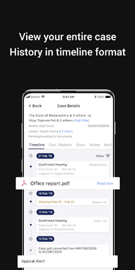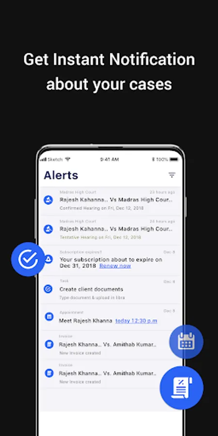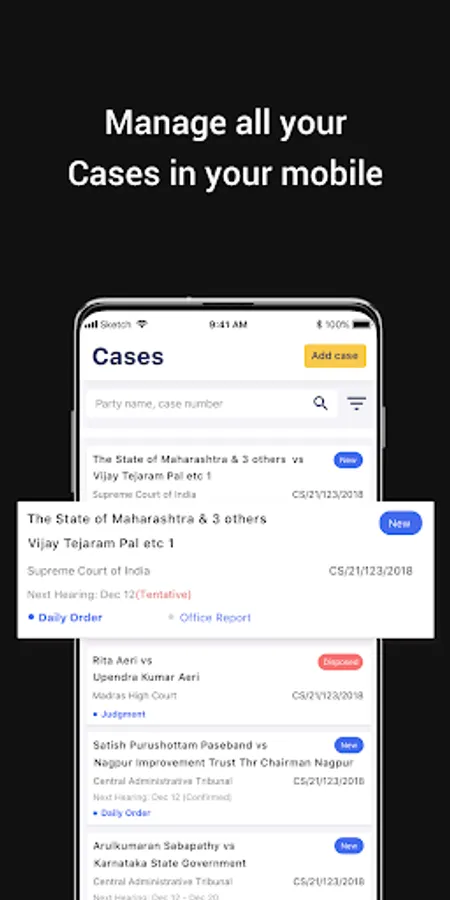 • Track every case and get regular case alerts such as case hearing, daily reports, and office reports.