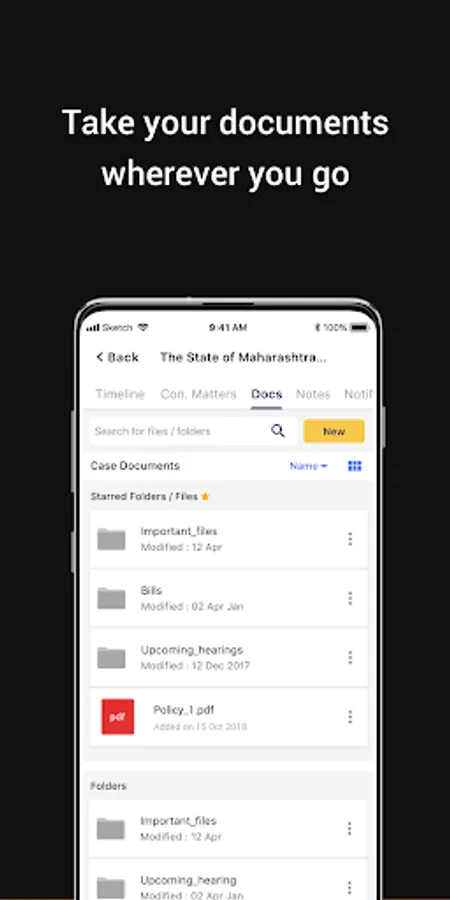 • Add notes and documents to your cases in your personalized document vault of 10GB storage space where you can view all the information related to your cases, all in one place.