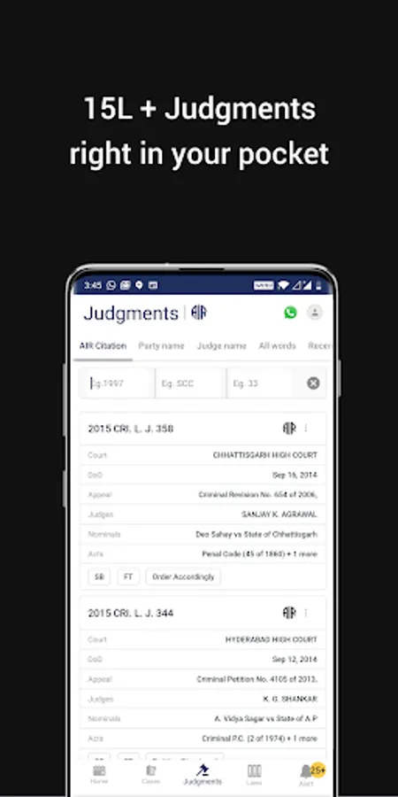 • Access over 15,00,000 judgments with headnotes and short notes in one place powered by All India Reporter.