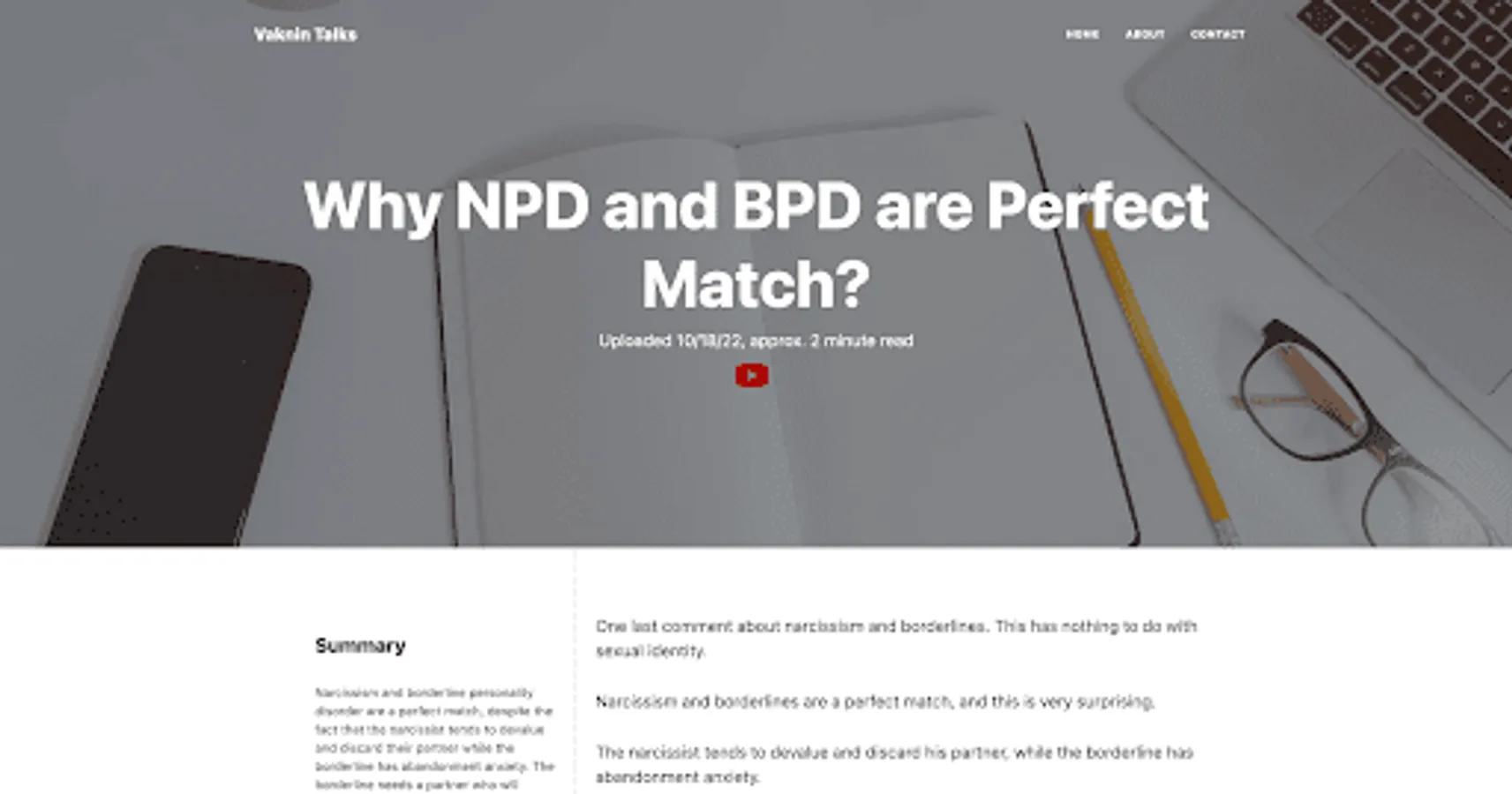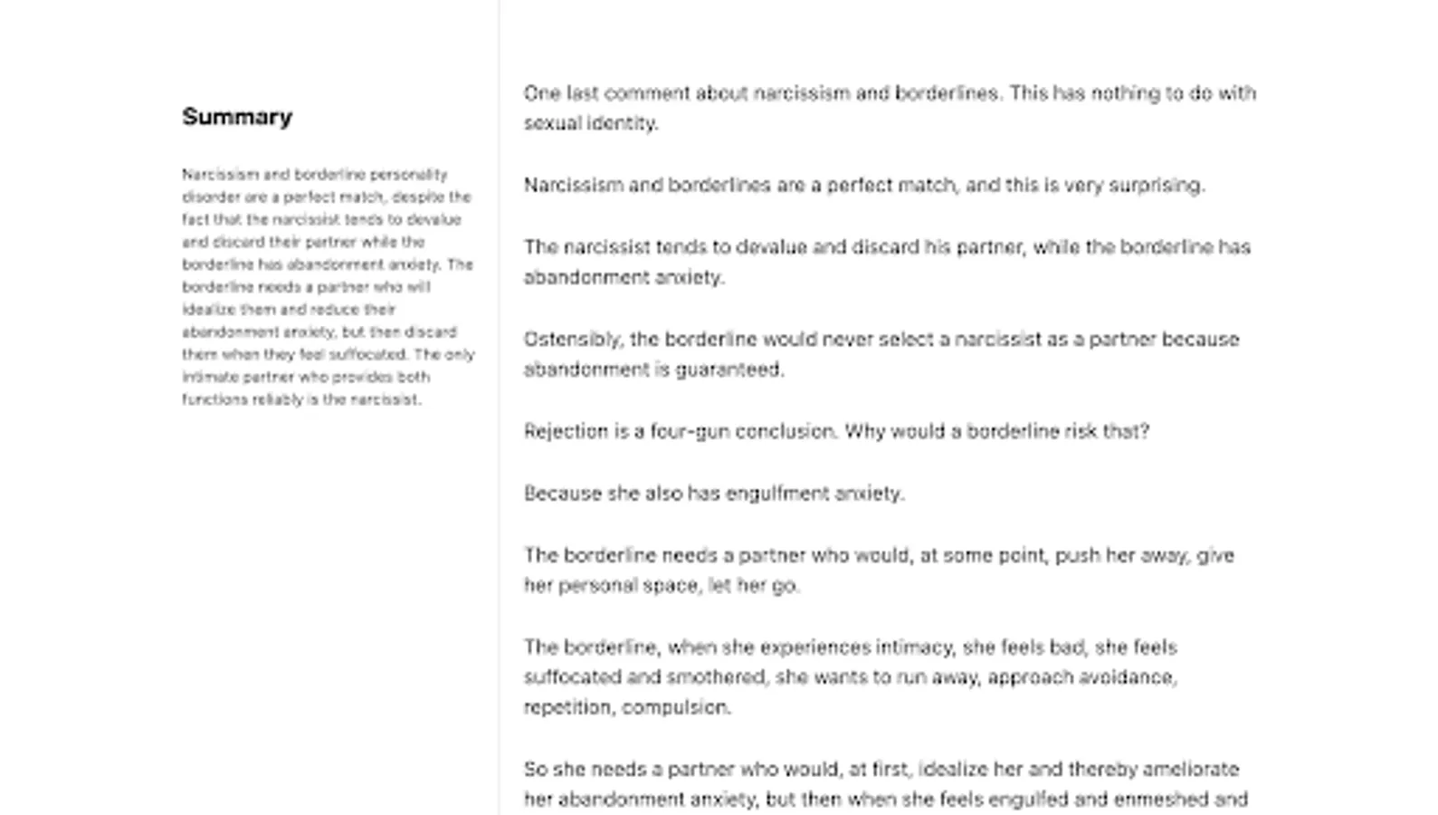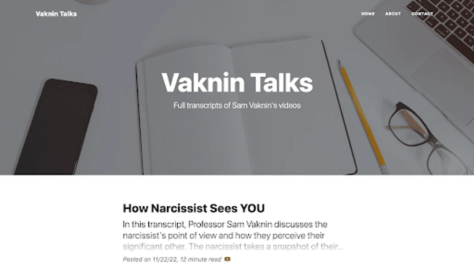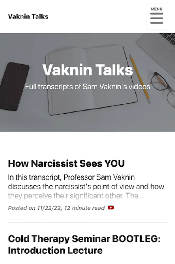 Search through and read all of Sam Vaknin's video transcripts and online works in Narcissism, Cluster B Personality Disorders, Psychology, and Relationship Advice.