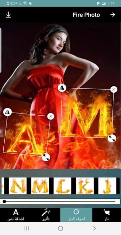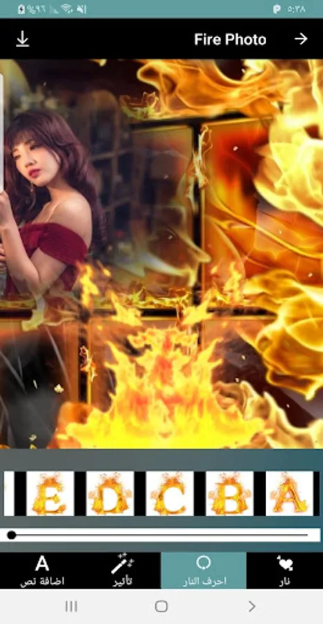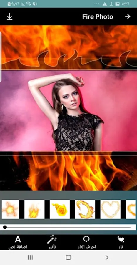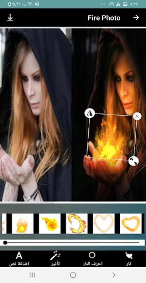 The most beautiful in the application control the effect of fire for images control the image size الصورة