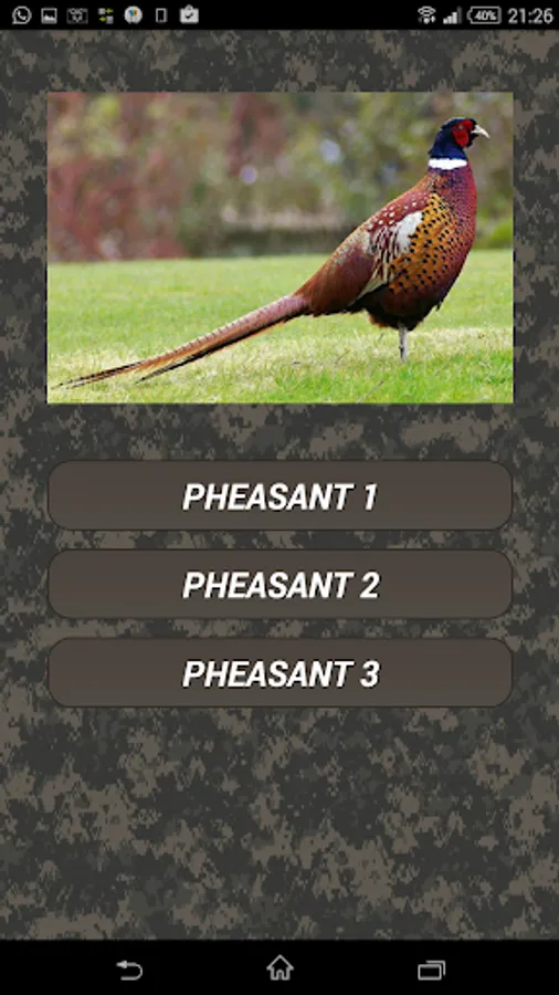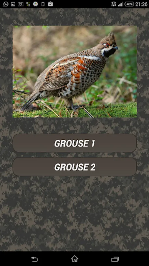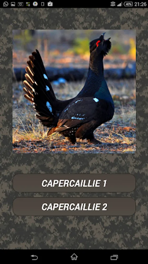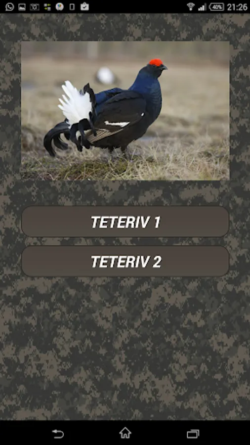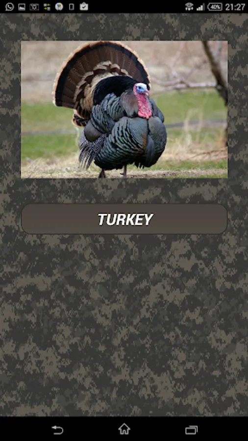 Turkey hunting calls program turns your mobile phone into a electronic hunting bird caller . Here you will find the voice of upland fowl and meadow fowl, as well as their image. For best effect can be connected to an external active speaker.