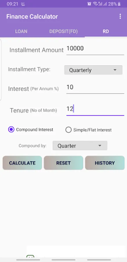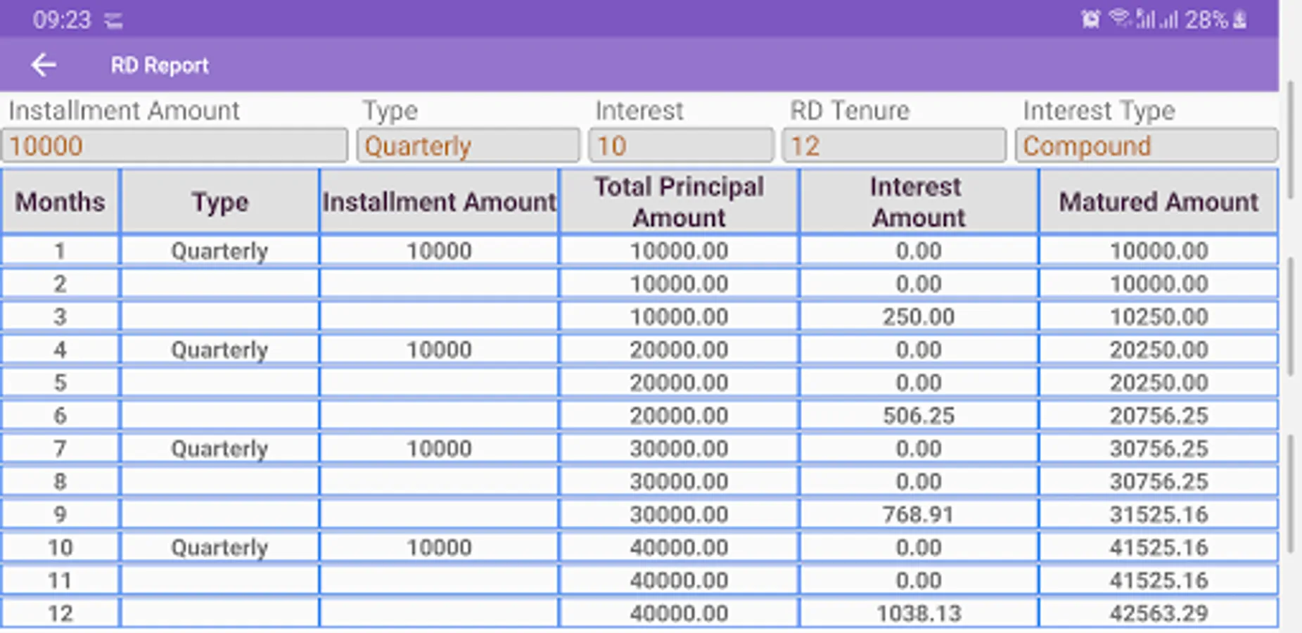 * Different interest type like monthly, quarterly ,half year and yearly.