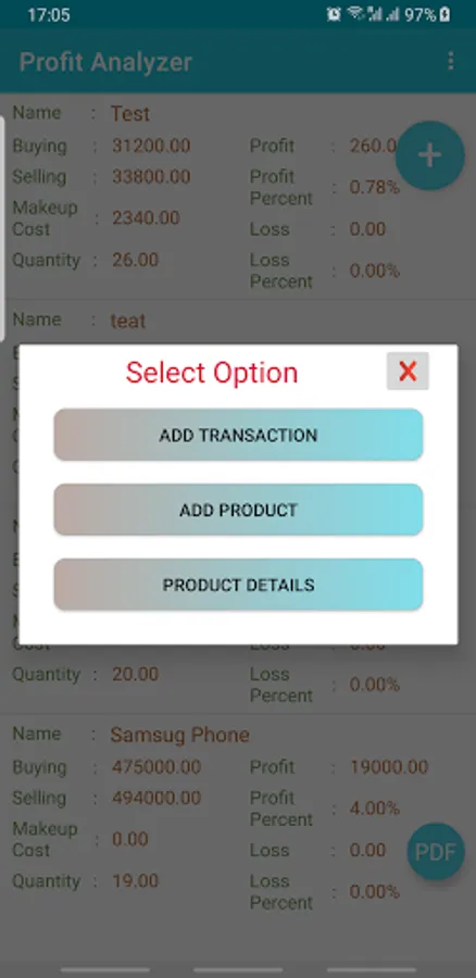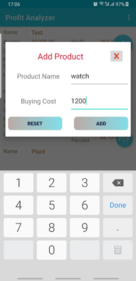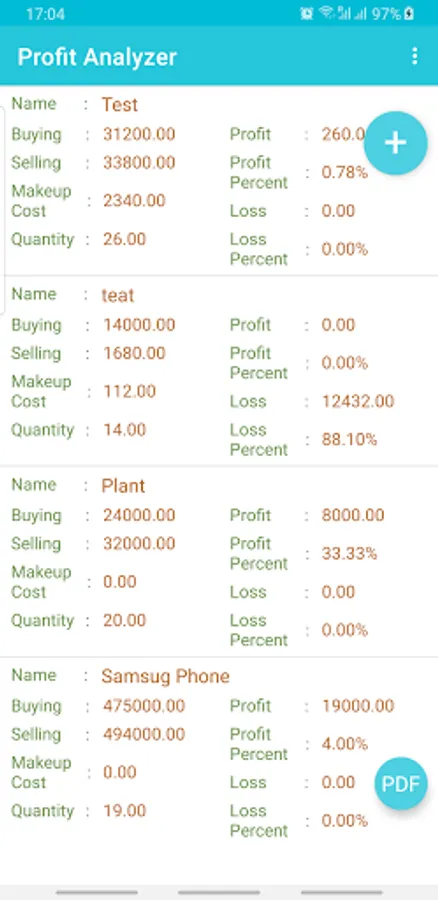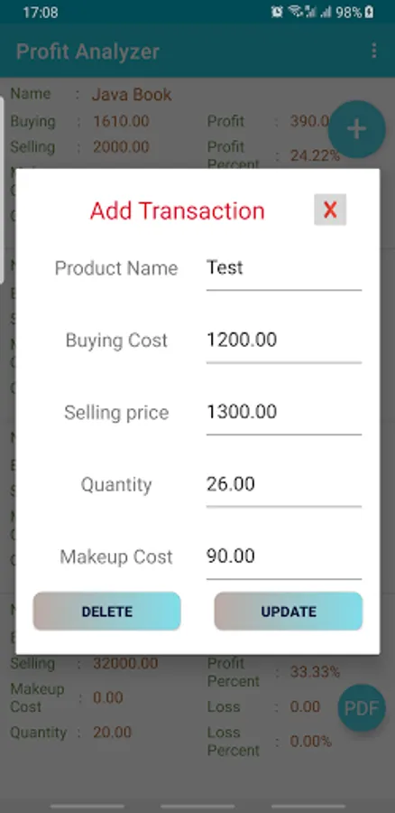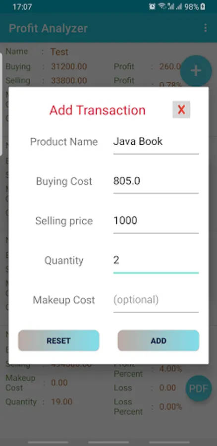 The Profit Analyzer used to calculate and analysis profit and loss amount, percentage for each buying and selling product. This application very useful for product seller and buyer also used for small or big stores and shops.
