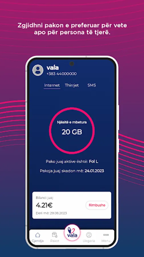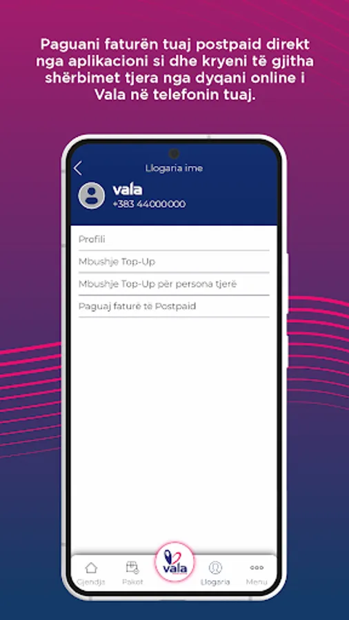 - të paguash faturën tënde Postpaid dhe t’i kryesh të gjitha shërbimet e tjera të dyqanit online të Vala-s