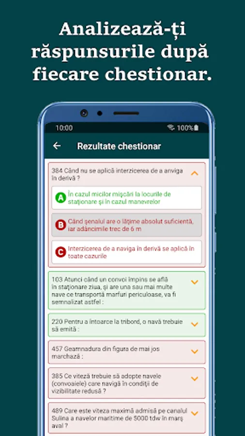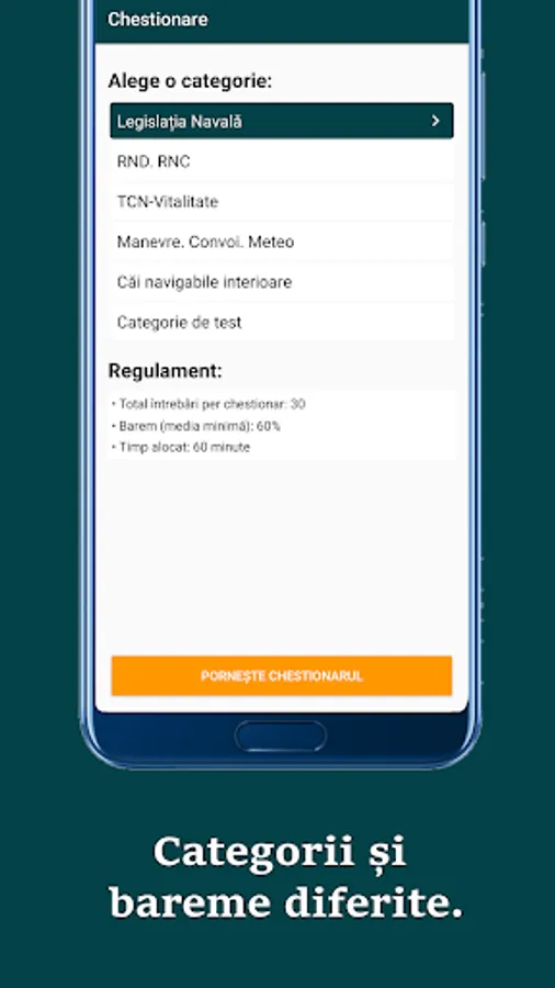 Simulator type application for ANR exams (Romanian Naval Authority)