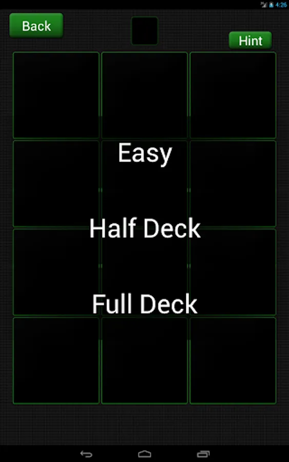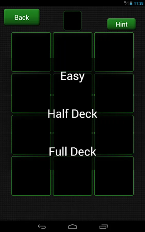 - Set up in Easy, Half Deck, or Full Deck game mode