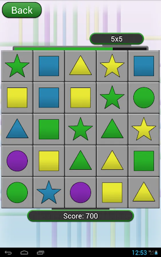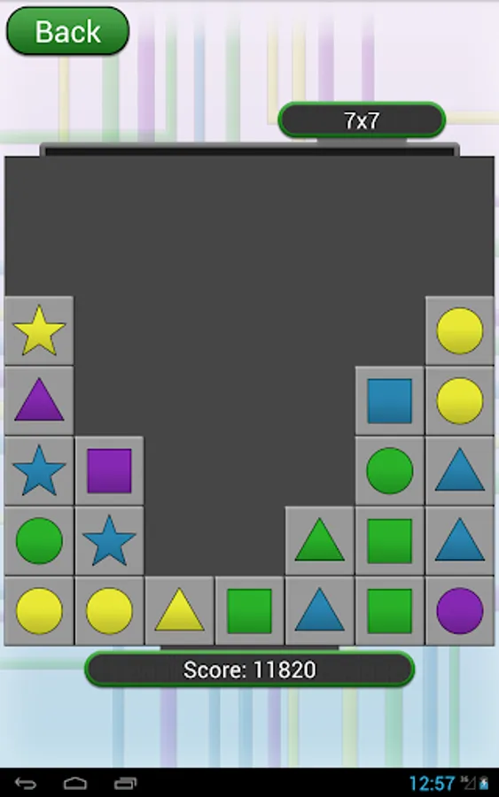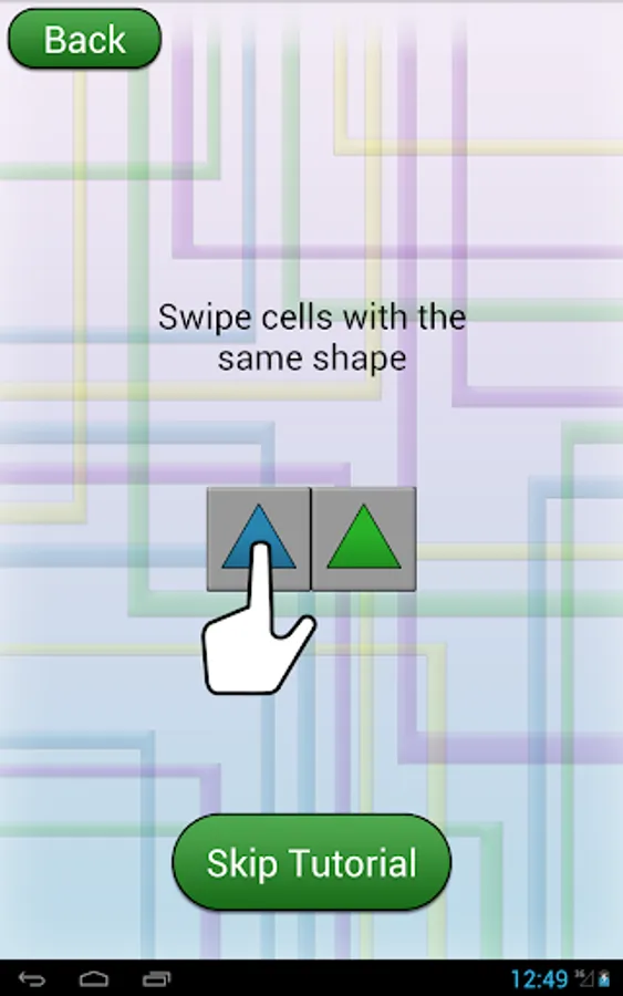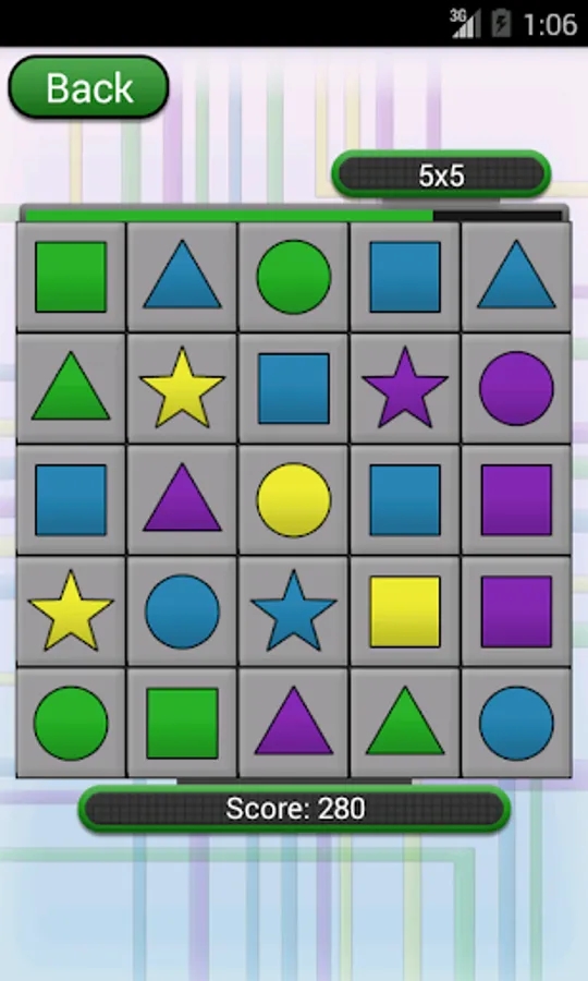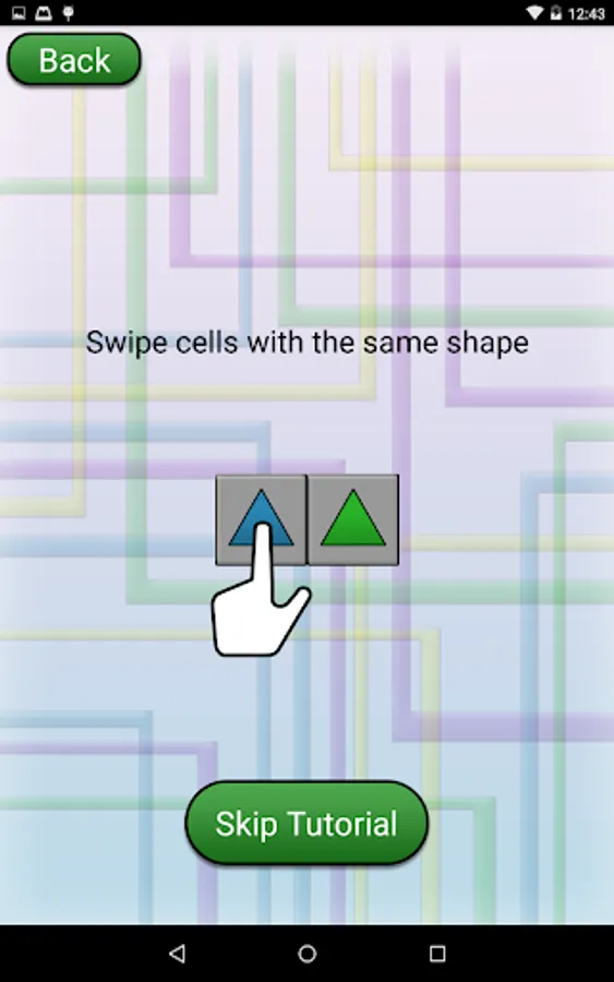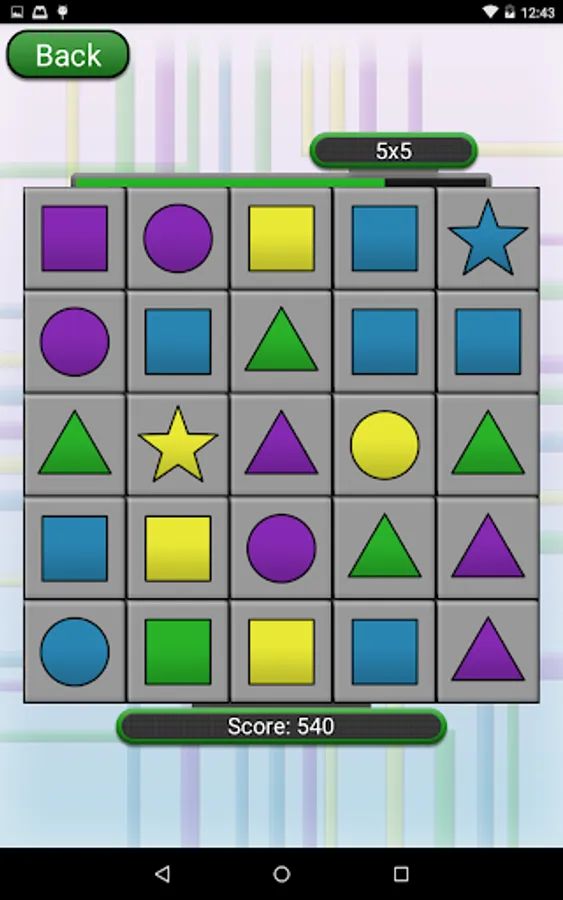 Swipe matching shapes or colors to remove them from the board. As shapes are removed new shapes will fall in to take their place. The game ends when there are no more swipes to be made or time is up.