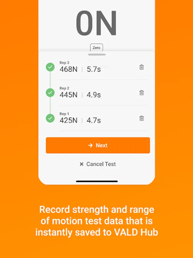 Save time on recording test notes with results that are automatically uploaded to VALD Hub and saved against a client profile.