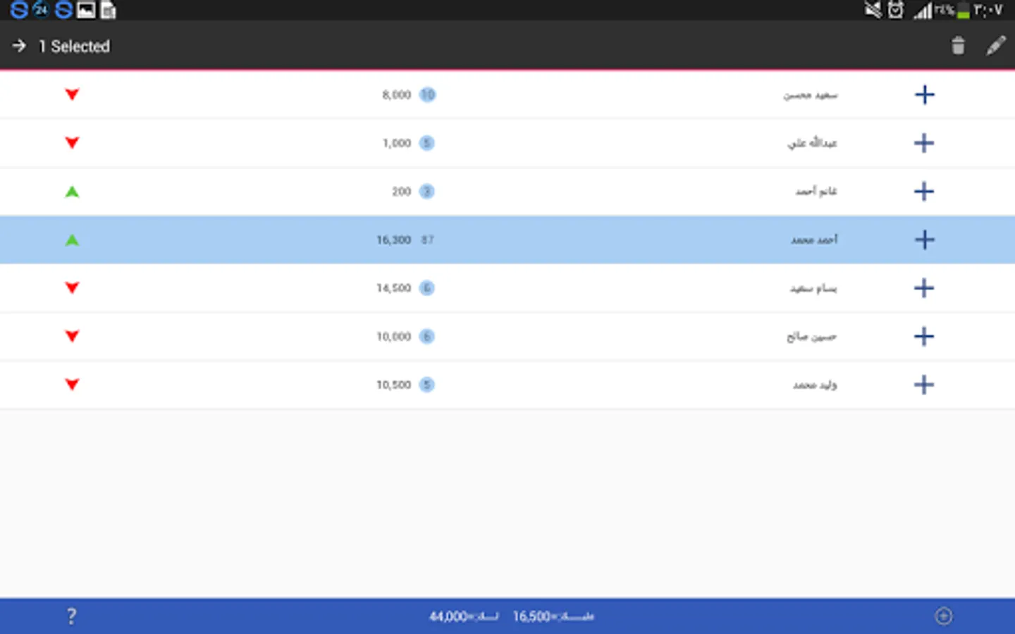 Clicking the Add button the amount of (+):