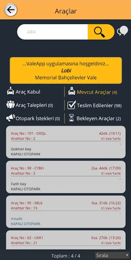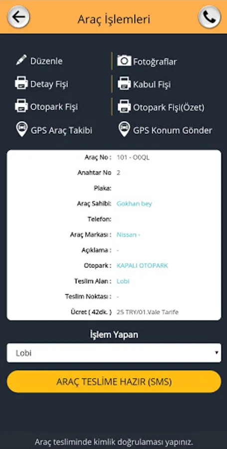 With the application, you can reach the owners of parked vehicles by phone. Confusion is eliminated as the parking time is automatically calculated through the application. An efficient, fast and reliable parking and valet service is provided.