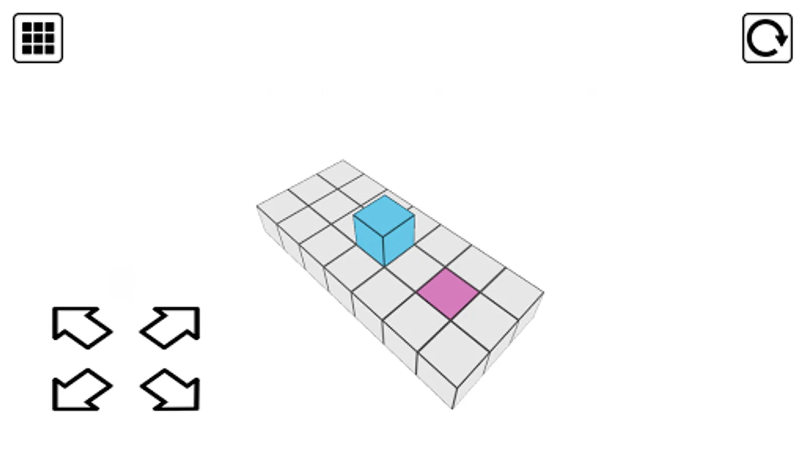 Move the blue cube and try to reach the pink cube. Easy, isn’t it?