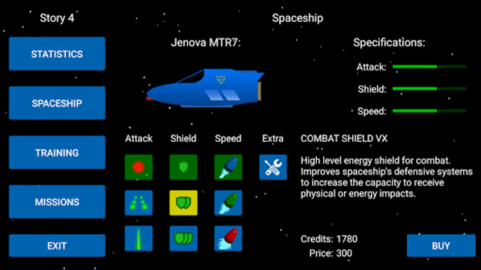 - 4 different spaceships with unique design and specs.