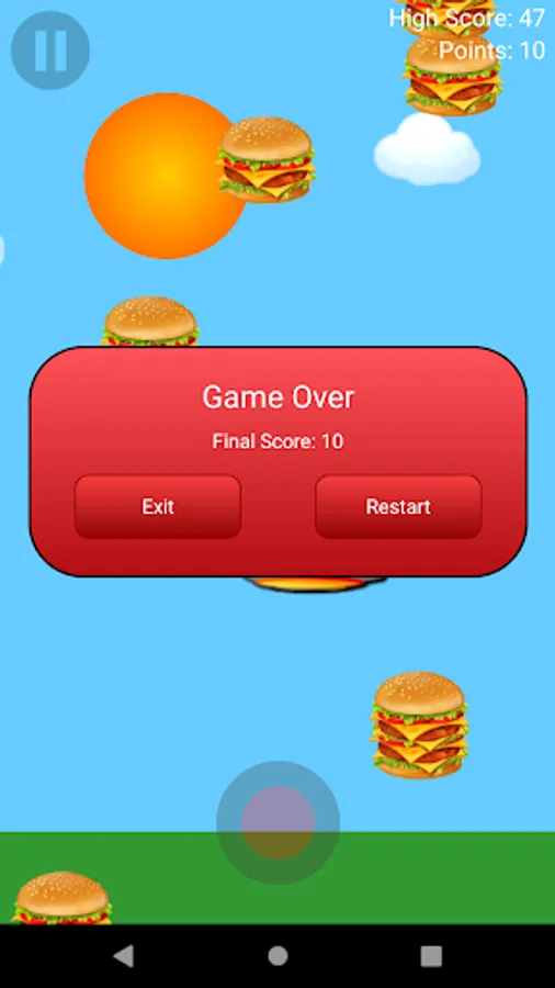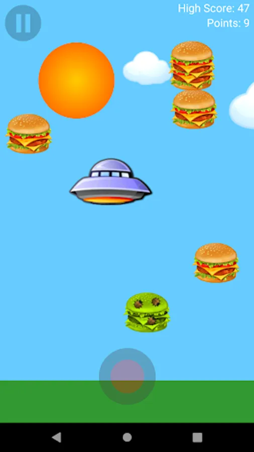 Simply control your spaceship with your finger to get as many hamburgers as possible.