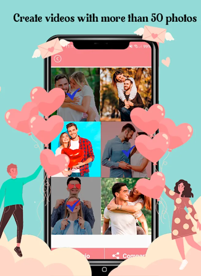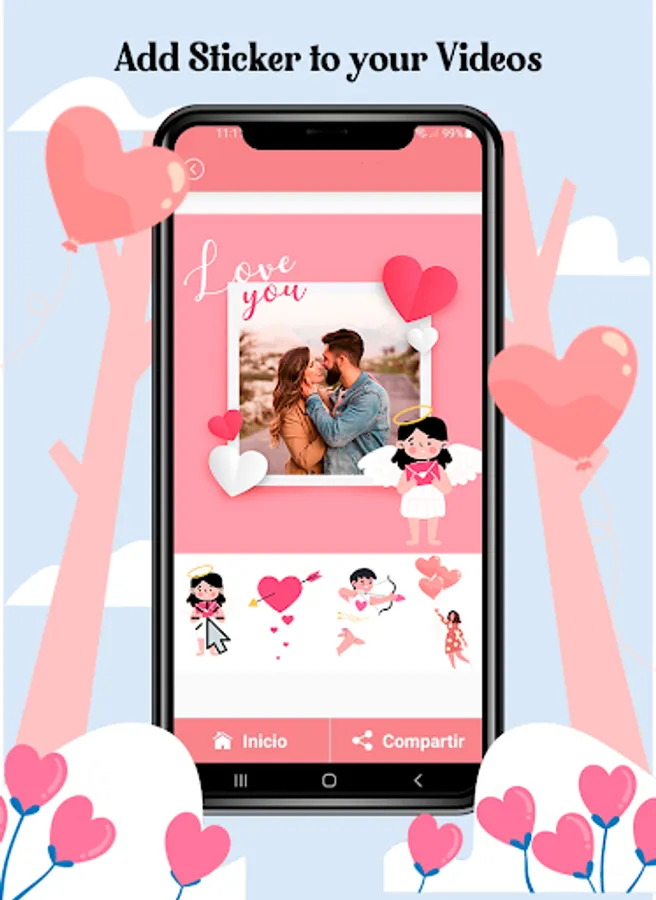 Create love videos for your partner or your friends using your photos, you can add effects to your videos like hearts, additional roses, you can add your favorite music.