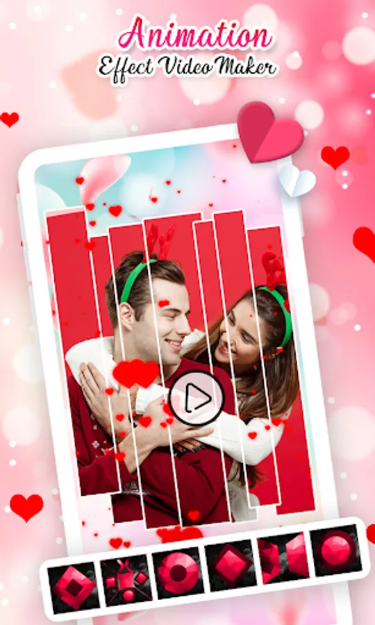 Provided best photo animation effect, Animated GIF Heart Theme, predefined sounds to give better effect. Make Video With animated love heart effect.