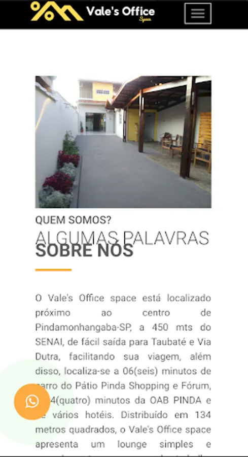 Vale's Office space is located close to the center of Pindamonhangaba-SP, 450 meters from SENAI, easy exit to Taubaté and Via Dutra, facilitating your trip, in addition, it is located 06 (six) minutes by car from Pátio Pinda Shopping and Forum, 04 (four) minutes from OAB PINDA and several hotels. Spread over 134 square meters, Vale's Office space features a simple and cozy lounge and a low-cost corporate work space that can help you professional or your business to grow. Our spaces are designed to promote productivity and networking, with low cost and many benefits. If you are looking for a well-connected and accessible office space or for remote work, choose Vale's Office space.