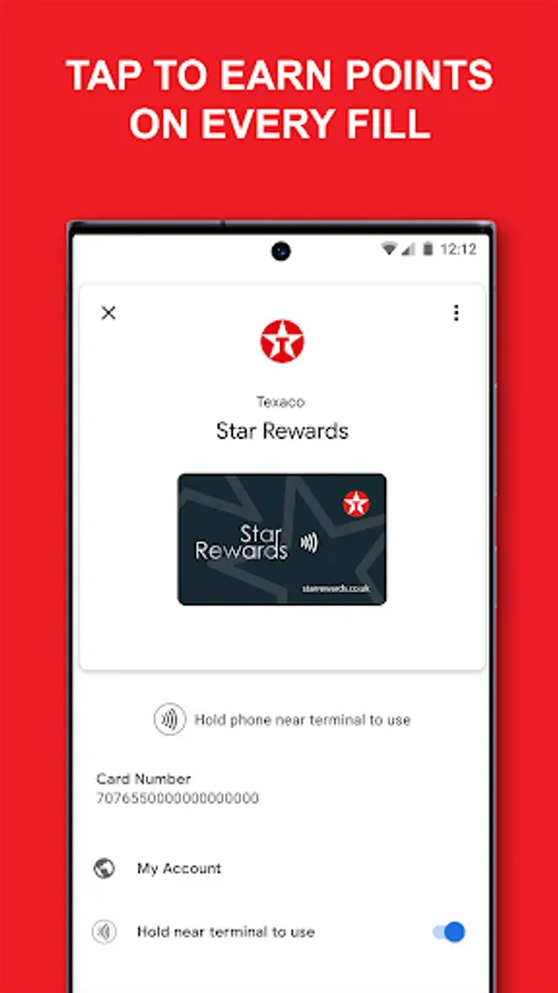 *200 Points awarded to new members downloading and registering via the Texaco app. 2 Points awarded per qualifying litre of fuel purchased for first 3 fill-ups when using your digital Star Rewards card at participating Texaco service stations only. Find your nearest participating Texaco service station using the site finder in the Texaco app. Requires minimum 500 Points before redemption. 500 Points can be redeemed for a £5 reward. See terms at starrewards.co.uk