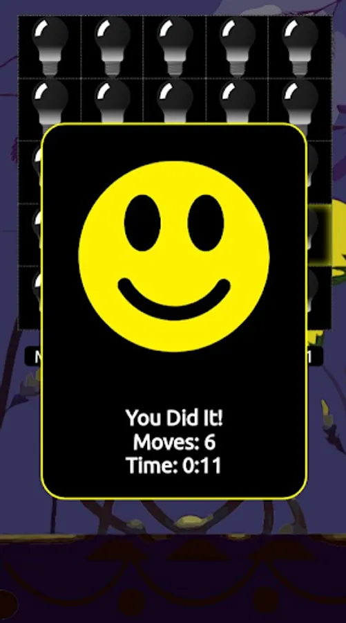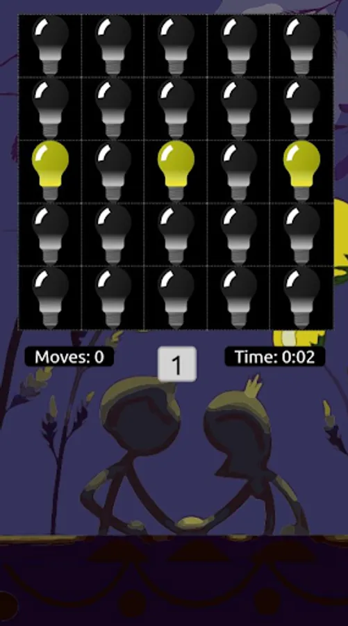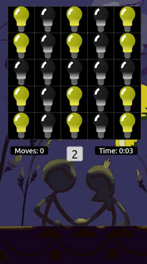 The board has 25 lights, some are ON and some are OFF. Clicking a light will toggle it (on to off, off to on). It will also toggle the 4 lights next to it (on the left, right, above and below it). To solve the puzzle, you have to Turn Off all the lights on the board.