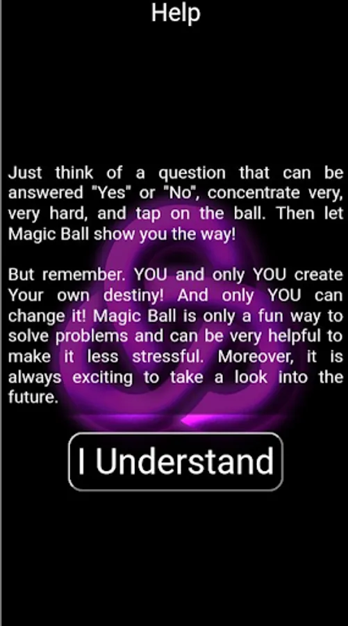 But remember. YOU and only YOU create Your own destiny! And only YOU can change it! Magic Ball is only a fun way to solve problems and can be very helpful to make it less stressful. Moreover, it is always exciting to take a look into the future.