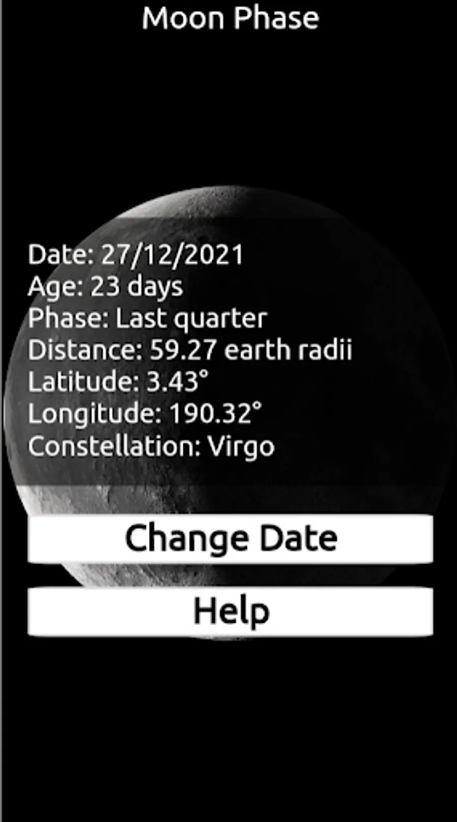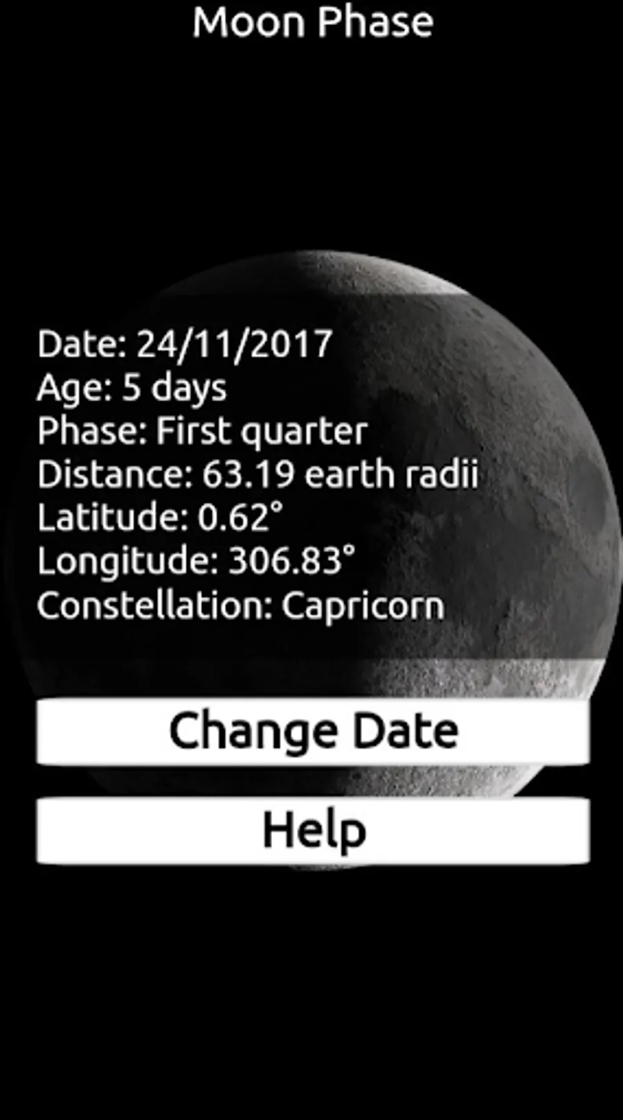 This app calculates the phase and position of the moon, show ecliptic latitude and longitude, the moon’s distance, age of moon, etc.