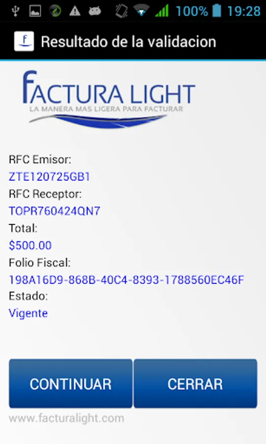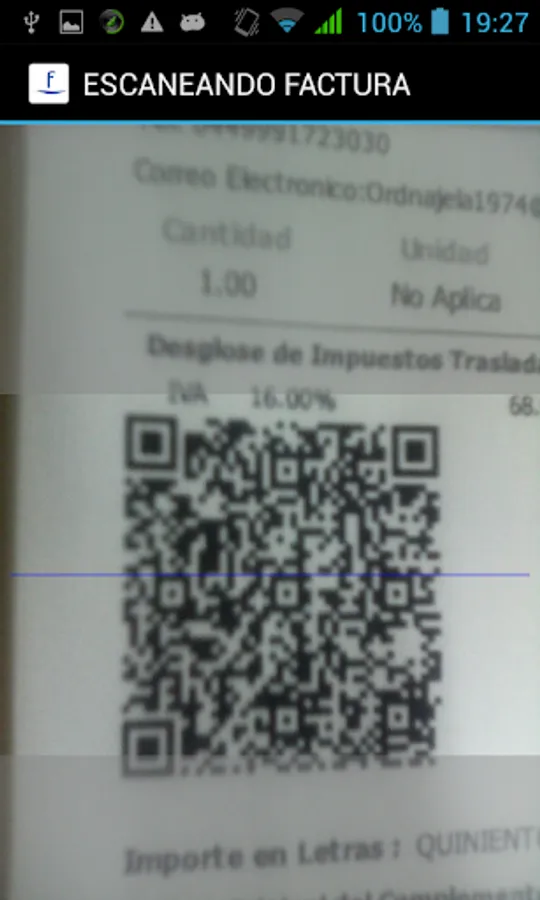 Application to validate all electronic invoices, scanning the two-dimensional barcode on the printed representation (QR Code) which capture information once scanned and will be sent for validation to SAT (Tax Administration) and return information if the bill is current, canceled, or not found.