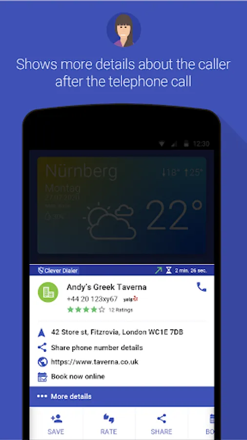Clever Dialer can use telephone numbers of contacts to determine whether a restaurant offers online reservations or whether you can book an appointment online with a doctor or hairdresser.