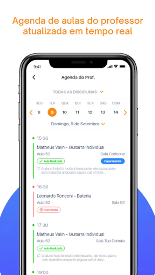 Follow your classes, access educational content chosen by your school, make reschedulings and rate your teacher!