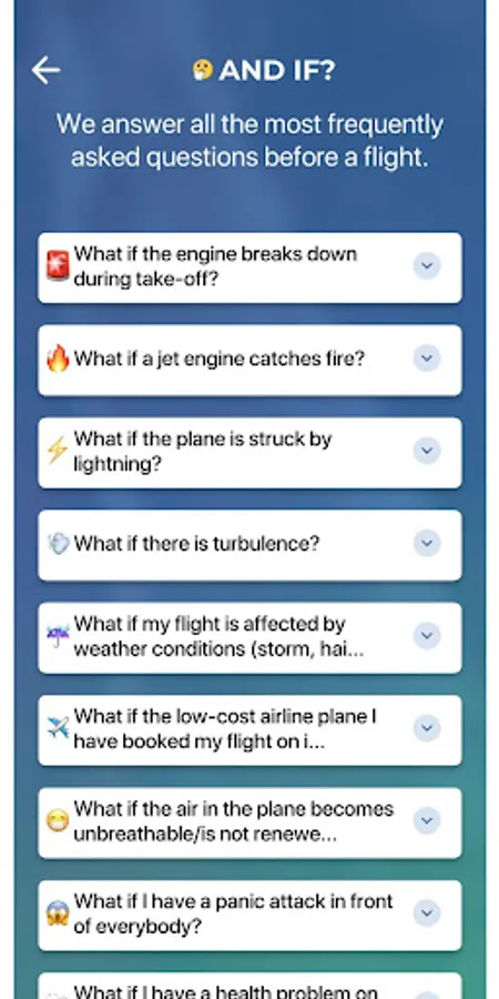 In this app you will discover all the answers to your questions and sources of anxiety, advice for your flight,and something to entertain you while you are in the air.
