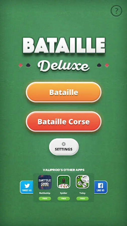 The Corsican battle is played with a traditional 52-card game. It gets closer to the war, but gives the ability to type the heap of cards from the center when two cards of the same value follow each other to retrieve all the cards from the heap. Thus, the Corsican battle involves concentration, reflexes and memory to win. It can be played from 2 to 4 players