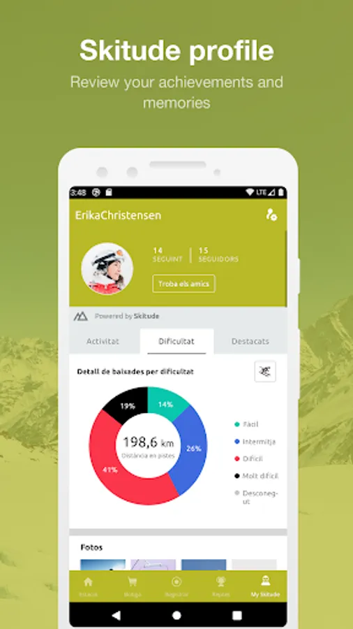 The App offers a range of features designed to optimize your experience before, during and after your trip. It’s very simple, plan your getaway and get real time updates on slope conditions. Set up your Skitude profile and track your activities on the slopes to get detailed stats about all your activities. And that’s not all, take part in challenges competing with the whole community, to be in with a chance of winning incredible prizes.
