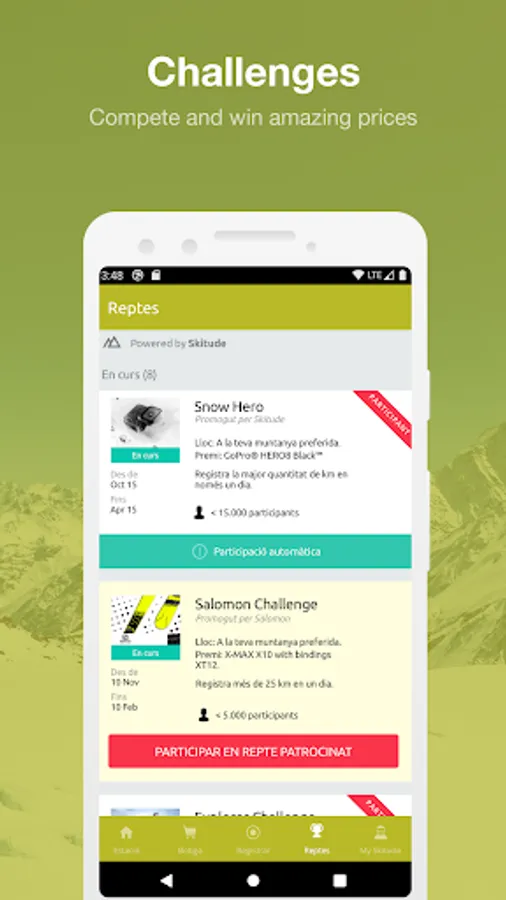Set up your Skitude profile to track your activities using the GPS tracker. Find out where you are in the season's rankings and try to complete the challenges to be in with a chance of winning great prizes.