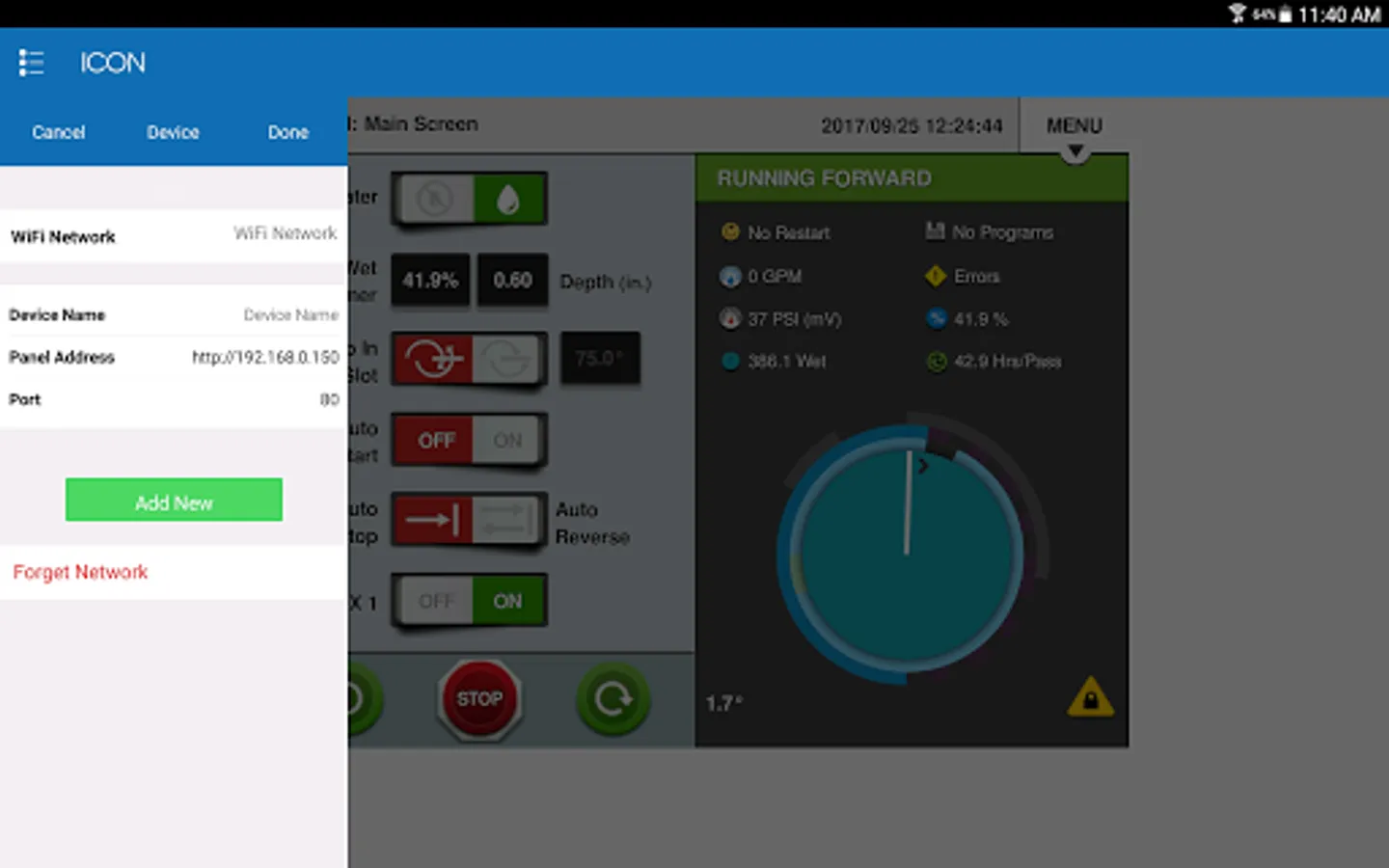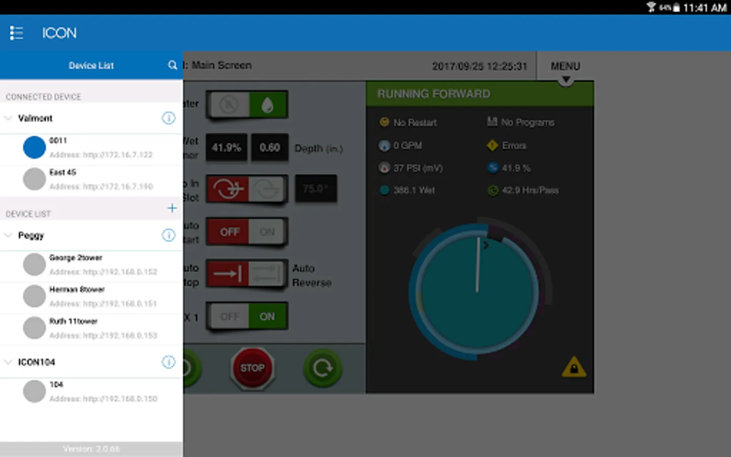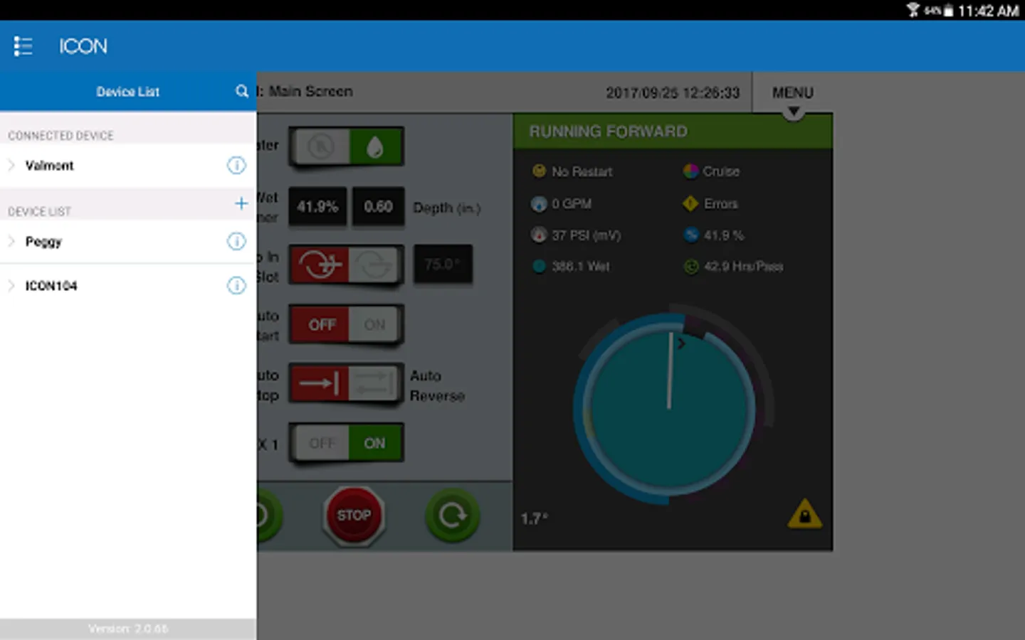 The Valley® ICON10™ and Valley® ICON1™ smart panels feature a revolutionary new way to control your center pivot. With the introduction of Valley Edge-of-Field WiFi , you can access and control your panel remotely through your connected mobile device. If you have installed multiple ICON panels in your operation, this app allows you to easily select the panel you want to connect to and control. Make going out to the pivot point to program and control your center pivot a thing of the past. ICON – Smart Panels Made Easy™.