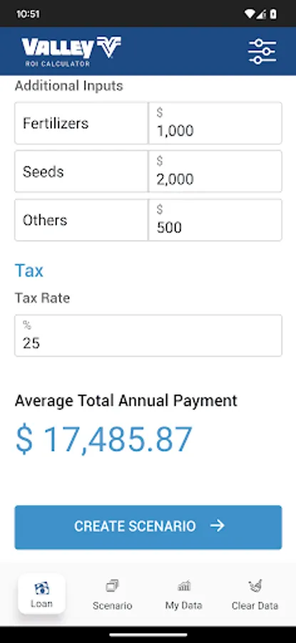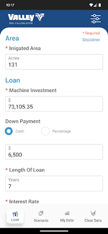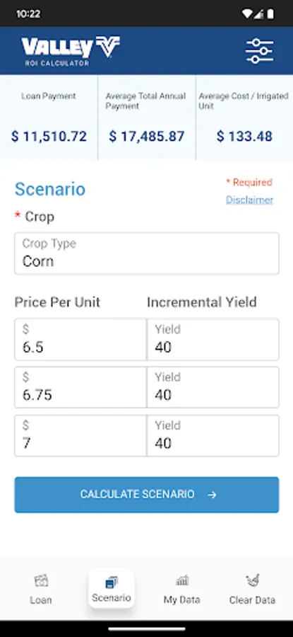 Calculate your ROI on the amount invested, operational expenses considering estimated inflation, and crop yield over the period of the loan.