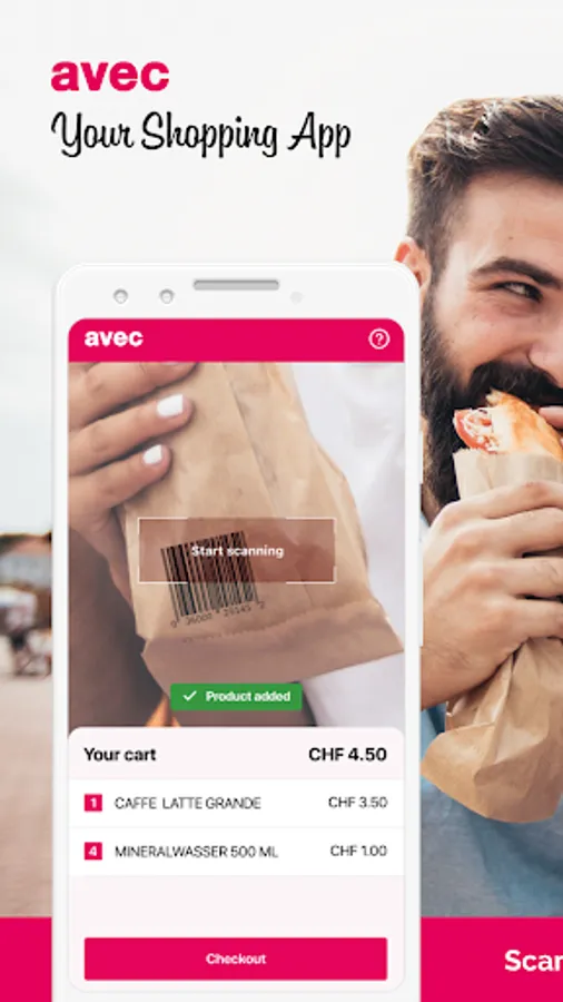 Shop around the clock, quickly and flexible with the avec 24/7: Scan & Pay app. In selected avec stores, you scan the QR code at the entrance to open the door and capture the barcodes of your selected products directly with your mobile phone. Payment is also made directly via the app, saving you extra time when shopping.