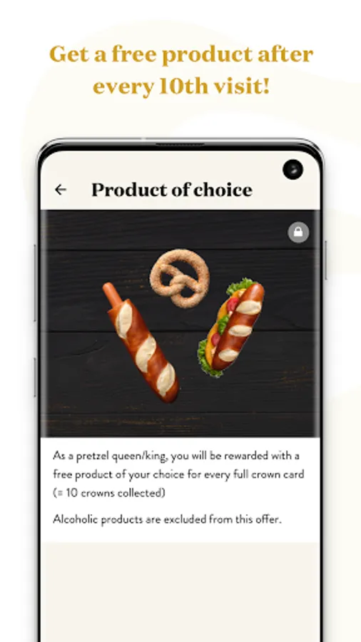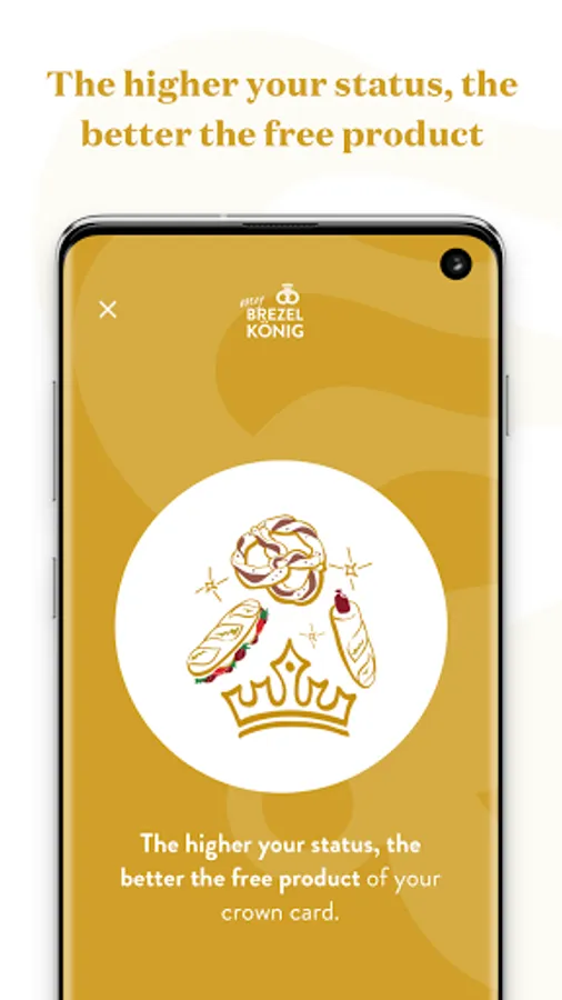 With "My Brezelkönig" you collect crowns with every visit at Brezelkönig (1 visit = 1 crown). You benefit from attractive rewards in the app. The higher your status, the more attractive your benefits.