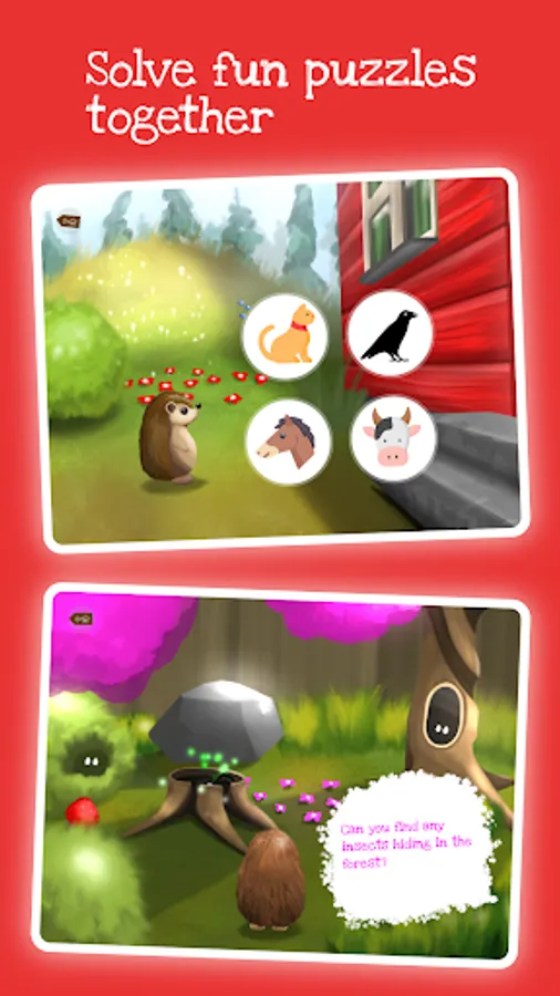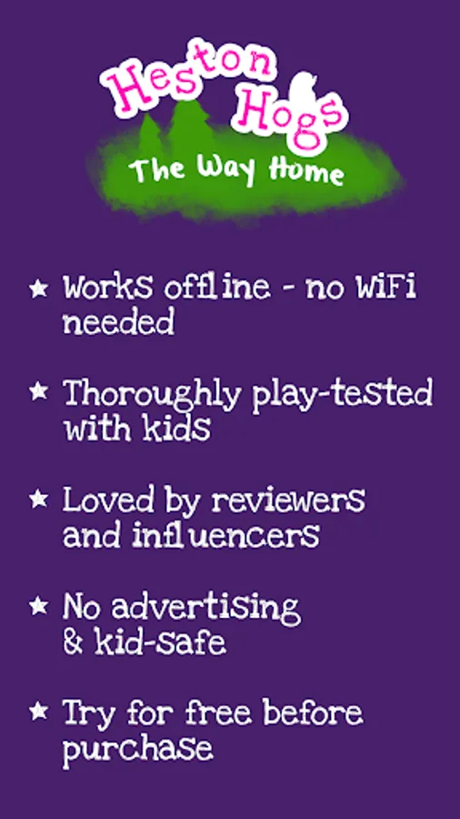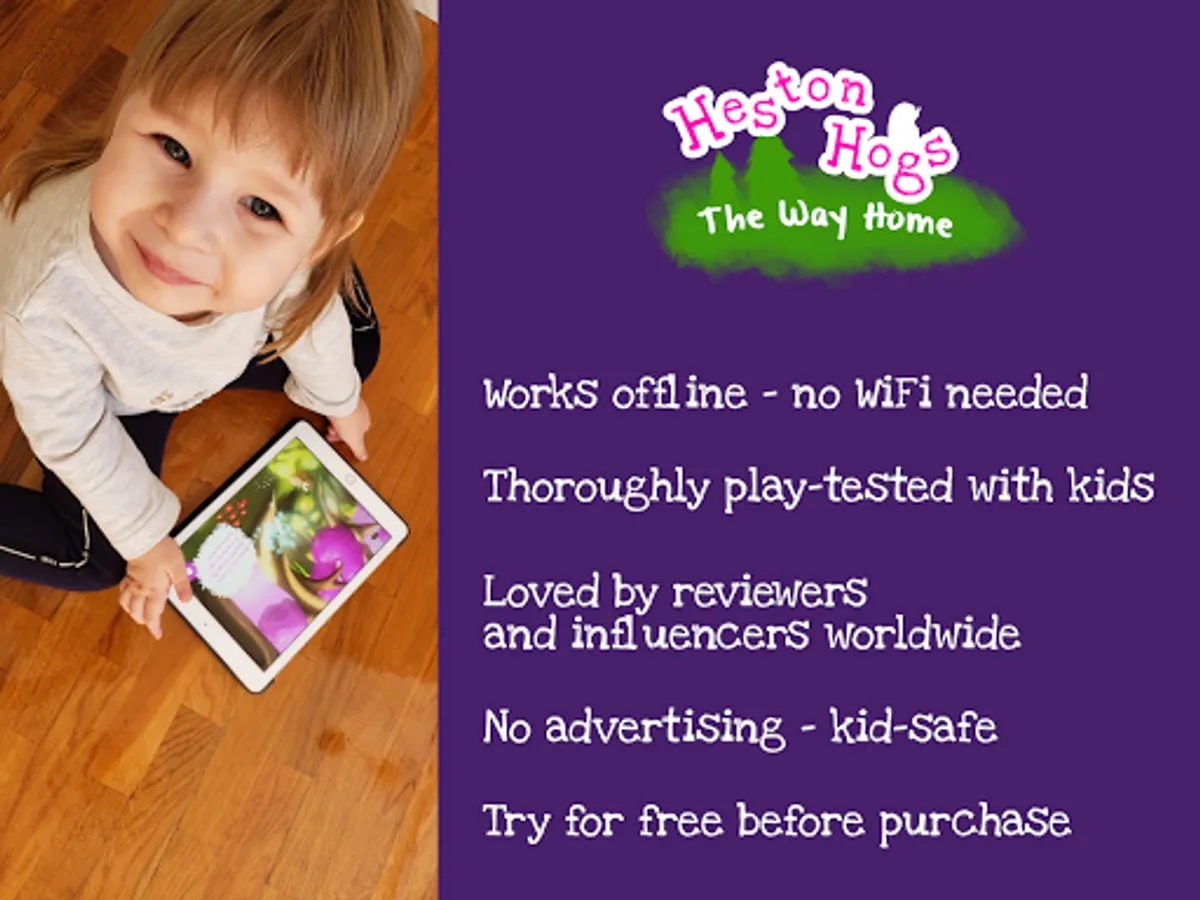 While mostly a fairy tale story book, Heston Hogs is also a kid's interactive book game in which kids need to tap, drag, find insects, guess the animals and much more! It keeps them engaged until the very end of Heston’s journey.