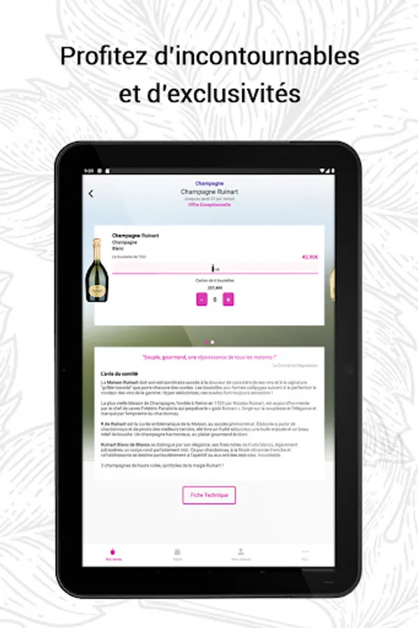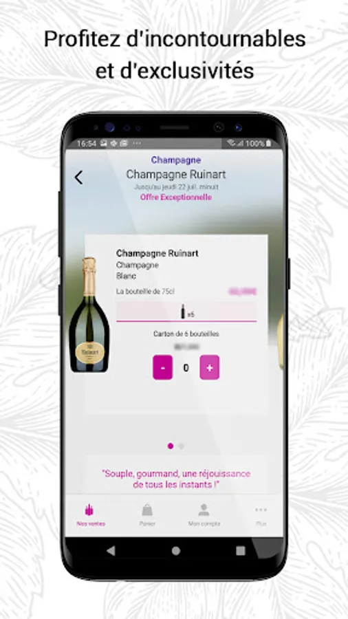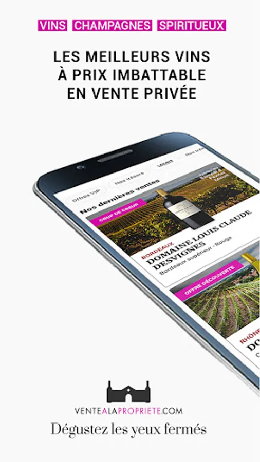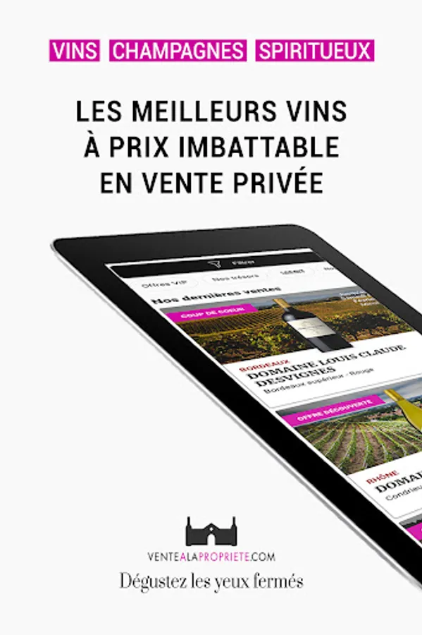 VALAP is the mobile application of Ventealapropriete.com, the reference site for private sales of wines, champagnes and spirits at unbeatable prices.