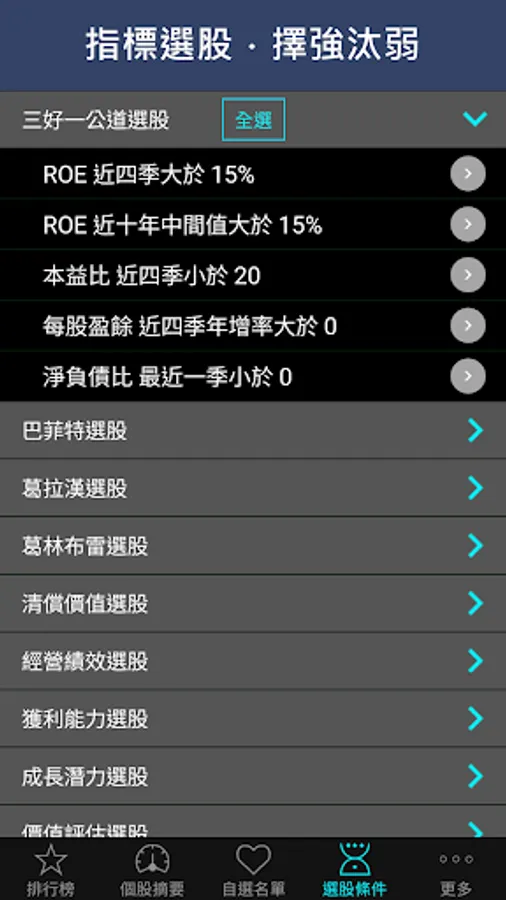 8. The professional version can use financial indicators to select stocks to select the strong and eliminate the weak.
