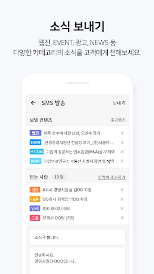 2. Deliver news in various categories such as webzine, EVENT, advertisement, and NEWS to customers (SMS/E-mail).