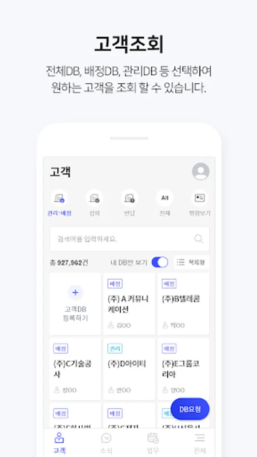 4. You can select all DB, assignment DB, management DB, etc. to inquire desired customers and register customer meeting information.