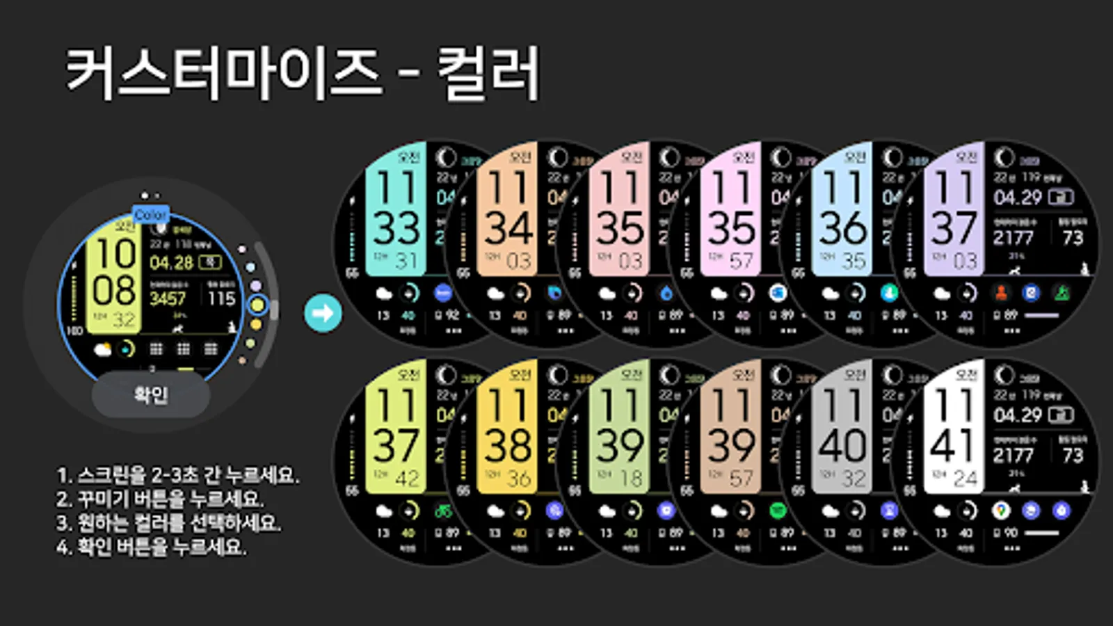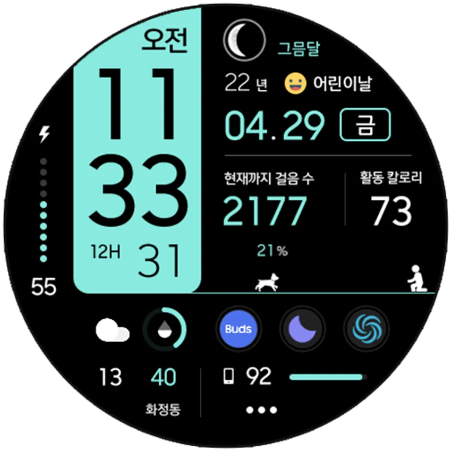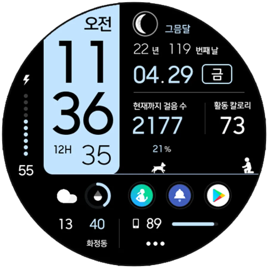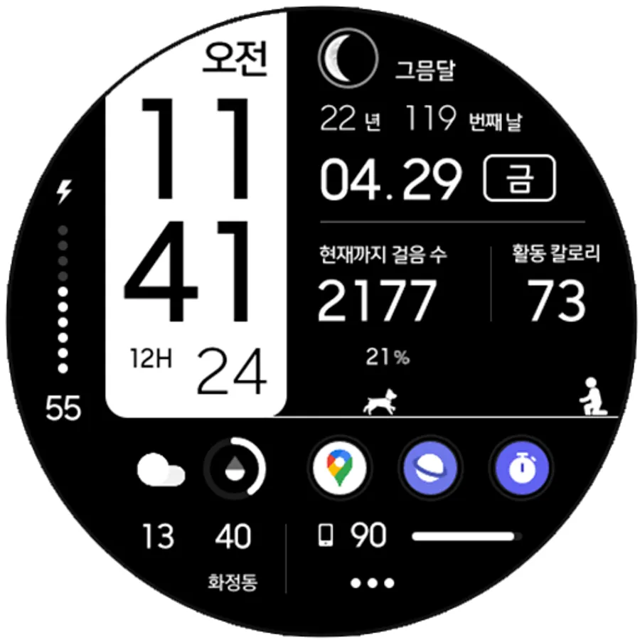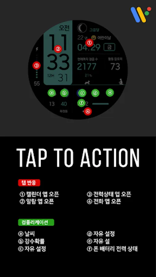 아래의 폰 배터리 컴플리케이션 앱을 휴대폰과 워치 양쪽에 모두 설치해주세요.