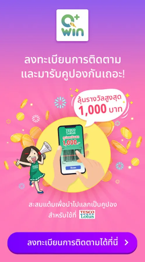 Earned points can be exchanged for coupons for shopping at TESCO LOTUS!