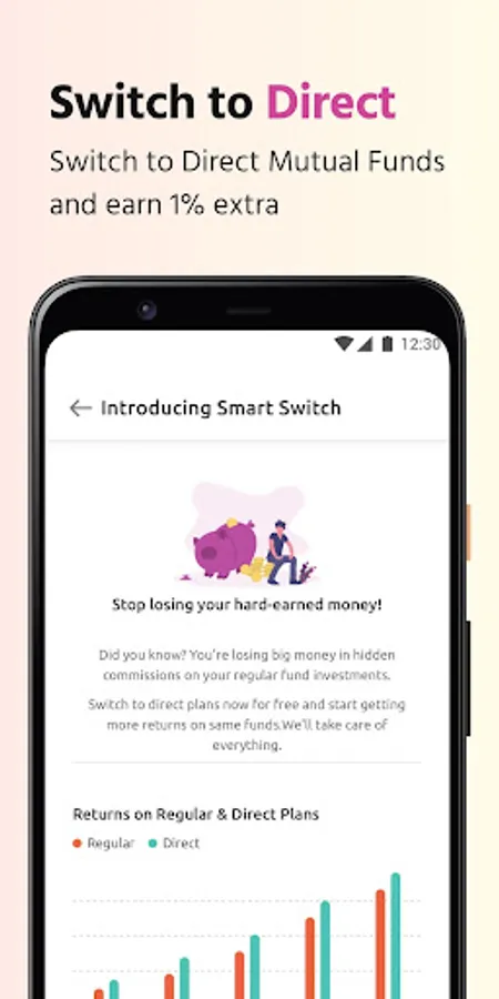 - Switch to Direct FundsOur advanced algorithms helps you switch regular funds to direct mutual funds. We take care of taxes and exit load avoidance before switch. This helps you earn up to 1.5% extra returns on the same mutual funds
