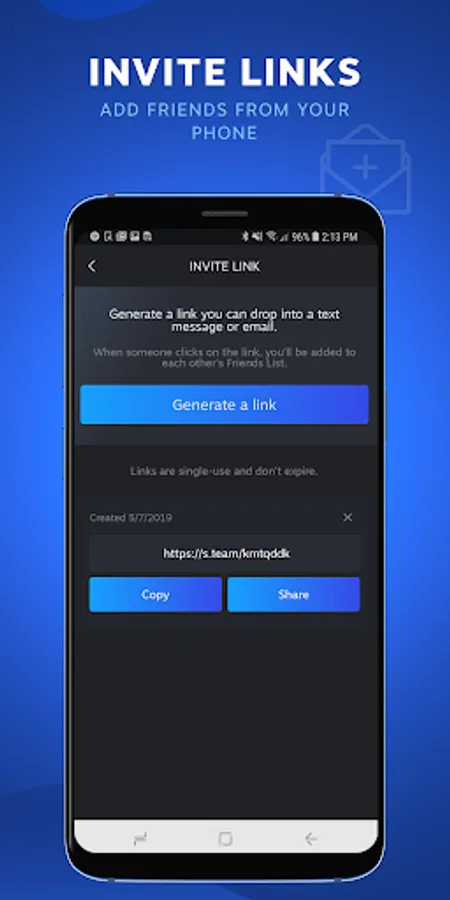 Invite Links – Add new friends on Steam with a link. Generate an invite link you can text or email.