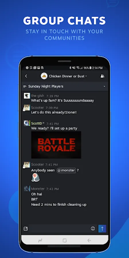 Customizable Notifications – Mobile notifications mean you'll never miss a message or game invite. You can customize your notifications per friend, group chat, and chat channel.